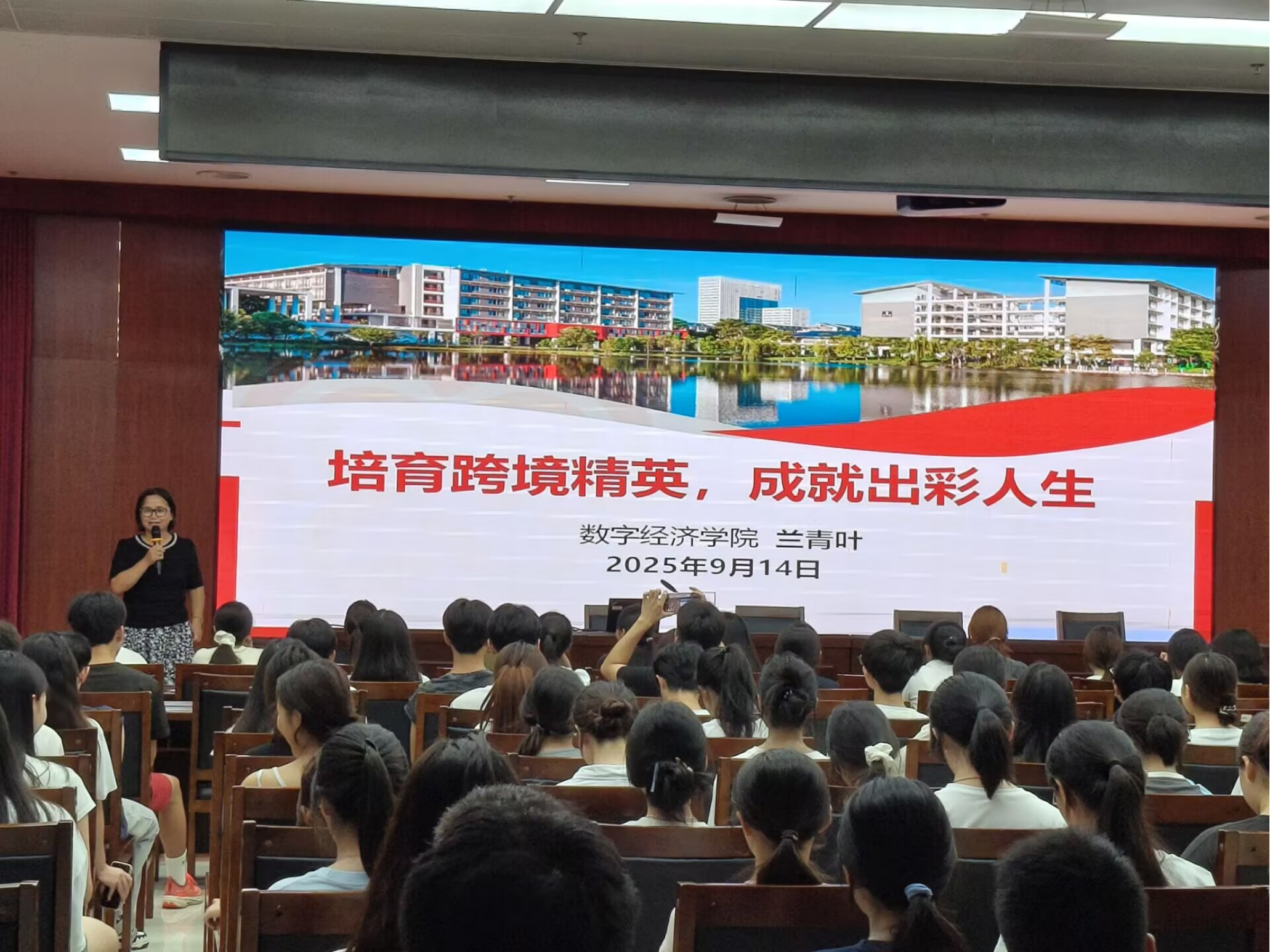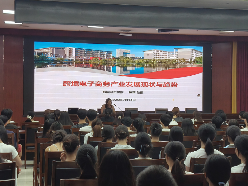 2025年9月14日,跨境电商专业面向2025级新生举办了一场内容丰富、视角多元的专业引导与认知活动。钟苹教授、专业负责人兰青叶副教授、李龙博士/副教授分别从行业趋势、专业建设、学生成长三个维度展开讲解,为新生描绘出一幅清晰有力的专业发展蓝图。