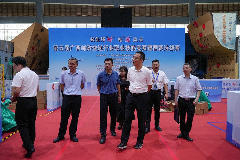 自治区邮政管理局党组成员、纪检组长、副局长莫祖俊,我校党委常委、副校长李东升,以及自治区职业技能鉴定中心、自治区总工会、自治区邮政管理局、广西快递协会等单位相关业务负责同志亲临赛场指导赛事工作,对数字经济学院的筹办执行成效给予高度评价。