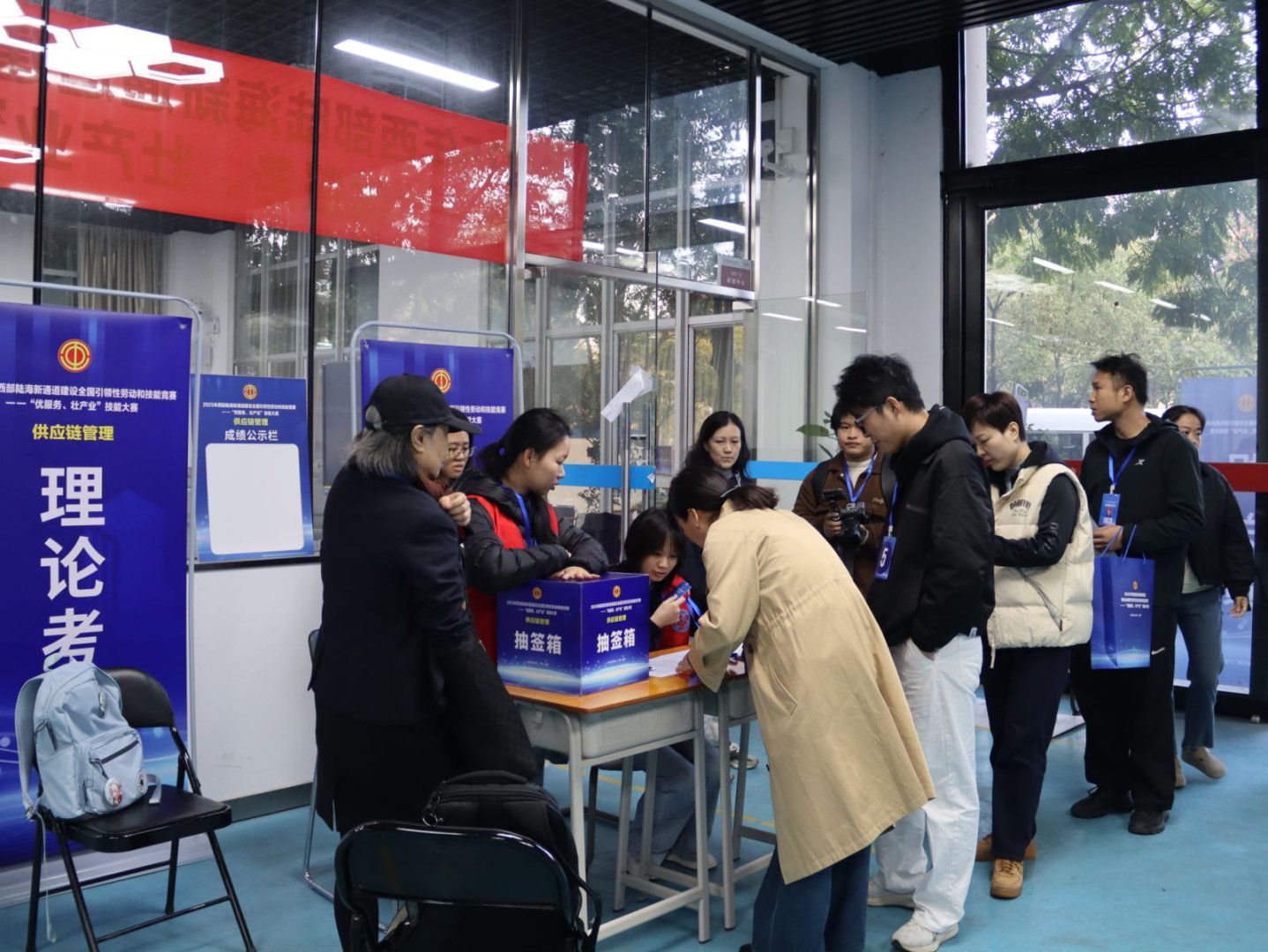 图为:选手在进行抽签、检录