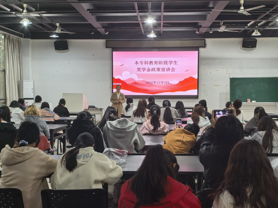 12月3日,数字经济学院在四训206教室,为25级100多名学生举办奖学金政策宣讲暨国家奖学金获得者经验分享会。