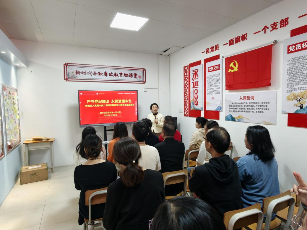 为深入贯彻落实主题教育工作要求,强化支部党员廉洁自律意识,数字经济学院教师第一党支部于12月2日下午组织党员教师赴学校廉政教育基地,参观“深入贯彻中央八项规定精神学习教育主题展”。本次参观以直观生动的教育形式,通过图文展示、案例解析等丰富内容,系统呈现中央八项规定出台以来全面从严治党的重大成果,深刻剖析违反中央八项规定精神的典型案例。党员们认真聆听讲解,驻足研读展品,在沉浸式学习中接受深刻的思想洗礼和纪律教育,进一步明确廉洁从教的行为准则。