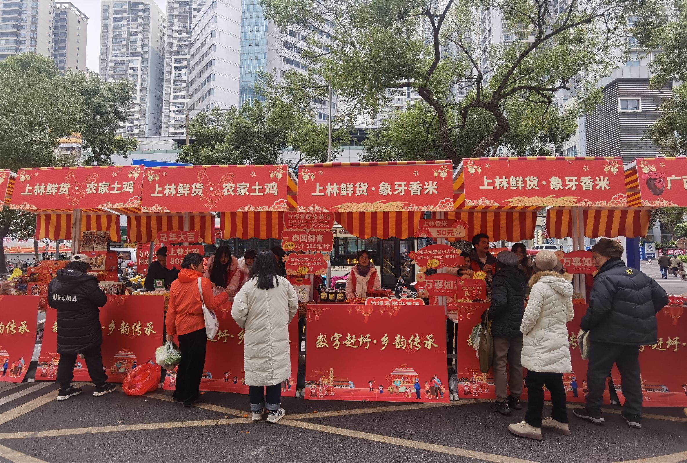 为积极响应国家乡村振兴战略部署,深化校地协同合作,1月24日,南宁职业技术大学数字经济学院联合校政企多方力量,在南宁实验电影院前广场举办“数字赶圩・乡韵传承”乡村振兴主题周末集市活动。此次活动由上林县政府委托开展,数字经济学院师生团队倾力打造线上线下融合的乡土物产消费场景,助力上林特色农产品走出县域。