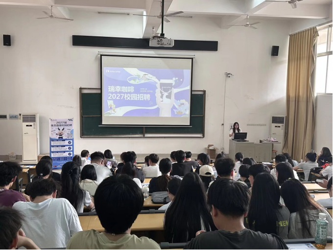 2026 年4月16日下午,瑞幸咖啡实习实训专场宣讲会在第一阶梯教室顺利举行。瑞幸咖啡南宁公司运营部总监林竹一行4人,数字经济学院市场营销专业负责人吉思及专业教师团队共同出席本次活动。