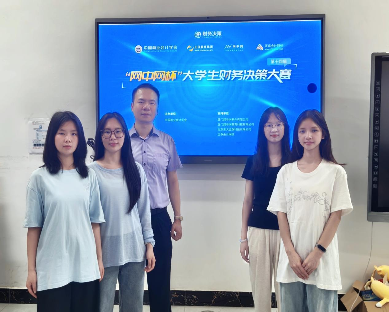 4月26日,由中国商业会计学会主办、厦门网中网软件有限公司协办的2026年“网中网杯”大学生财务决策大赛全国选拔赛圆满结束。我院大数据与会计专业派出两支参赛队:第一队为殷逸云、黄丹萍、王诗琪、罗如意(指导老师:徐扬、黄承元);第二队为梁梦莹、张倩、梁丹妮、张德莲(指导老师:徐扬、阙鹂漫),经过激烈角逐,两个队伍均获得团体二等奖。