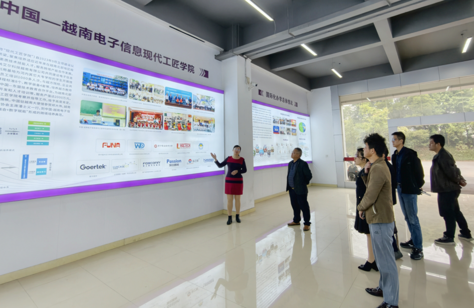 协会一行首先参观考察了设于我校的中国-东盟跨境电商大数据协同创新中心。跨境电商专业教师姚洁担任讲解,向来宾介绍了我校国际化办学成果、协同创新中心的数据平台、实训功能以及该中心在服务区域跨境电商产业发展、支撑教学科研方面所发挥的作用。