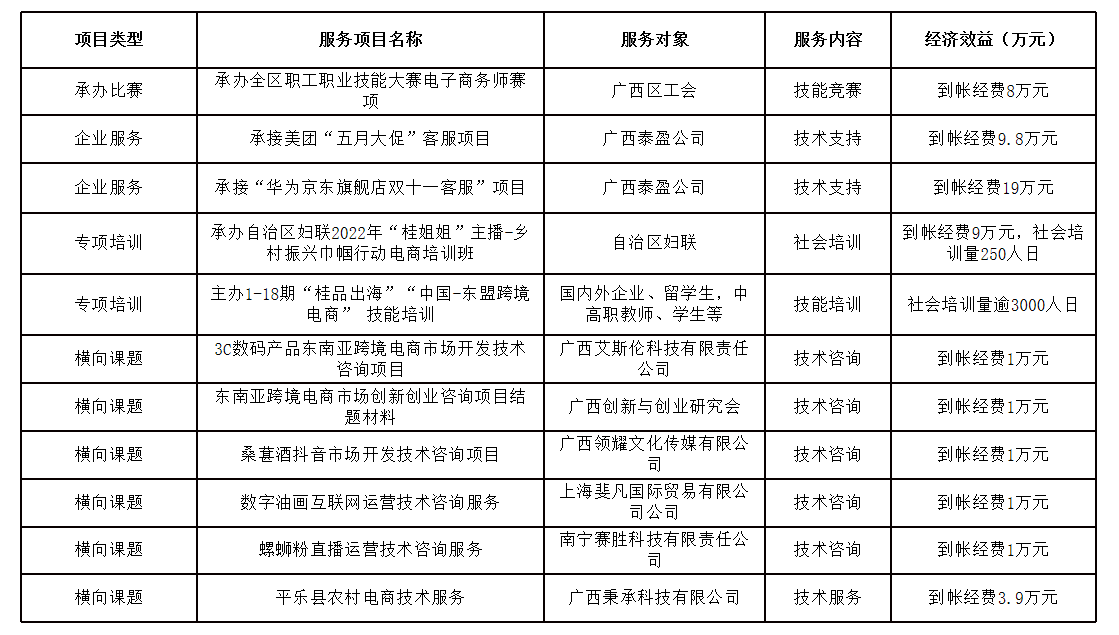 基本功能:在中国—东盟自由贸易区、“一带一路”、区域全面经济伙伴关系协定(RCEP)大背景下,对接广西农村电商、中国-东盟跨境电商产业的发展,服务乡村振兴和“桂品出海”,以一库(东盟多语言跨境电商课程资源库)三中心(中国-东盟跨境电商大数据中心、电商国际师资培训中心、电商双创人才培养中心)为载体,政校行企研与国际多元主体协同,打造合作载体和路径,促进产教融合、科教融汇。